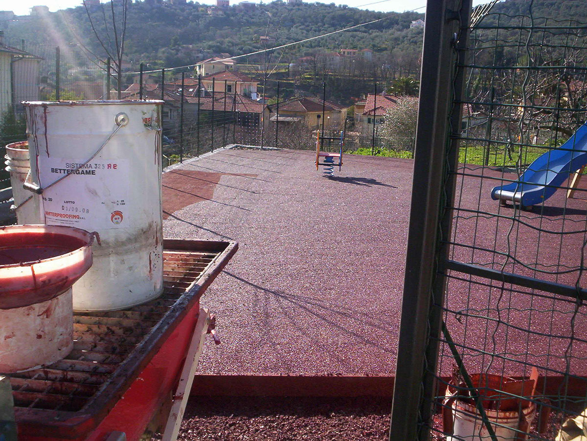 finitura gomma colata rossa parco giochi