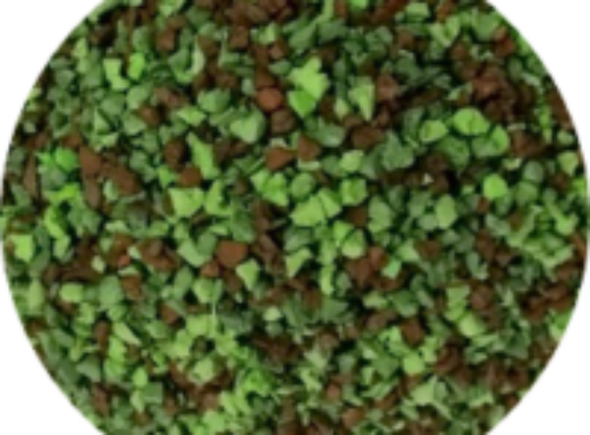 gazon artificiel de remplissage de couleur marron vert Prismi présente le premier nouveau remplissage en caoutchouc vert pour gazon artificiel avec une...