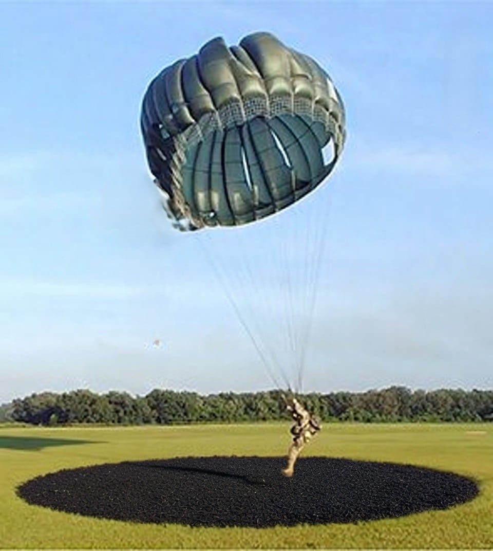 Circular paratrooper landing pad with Parafloor rubber granules, aerial view